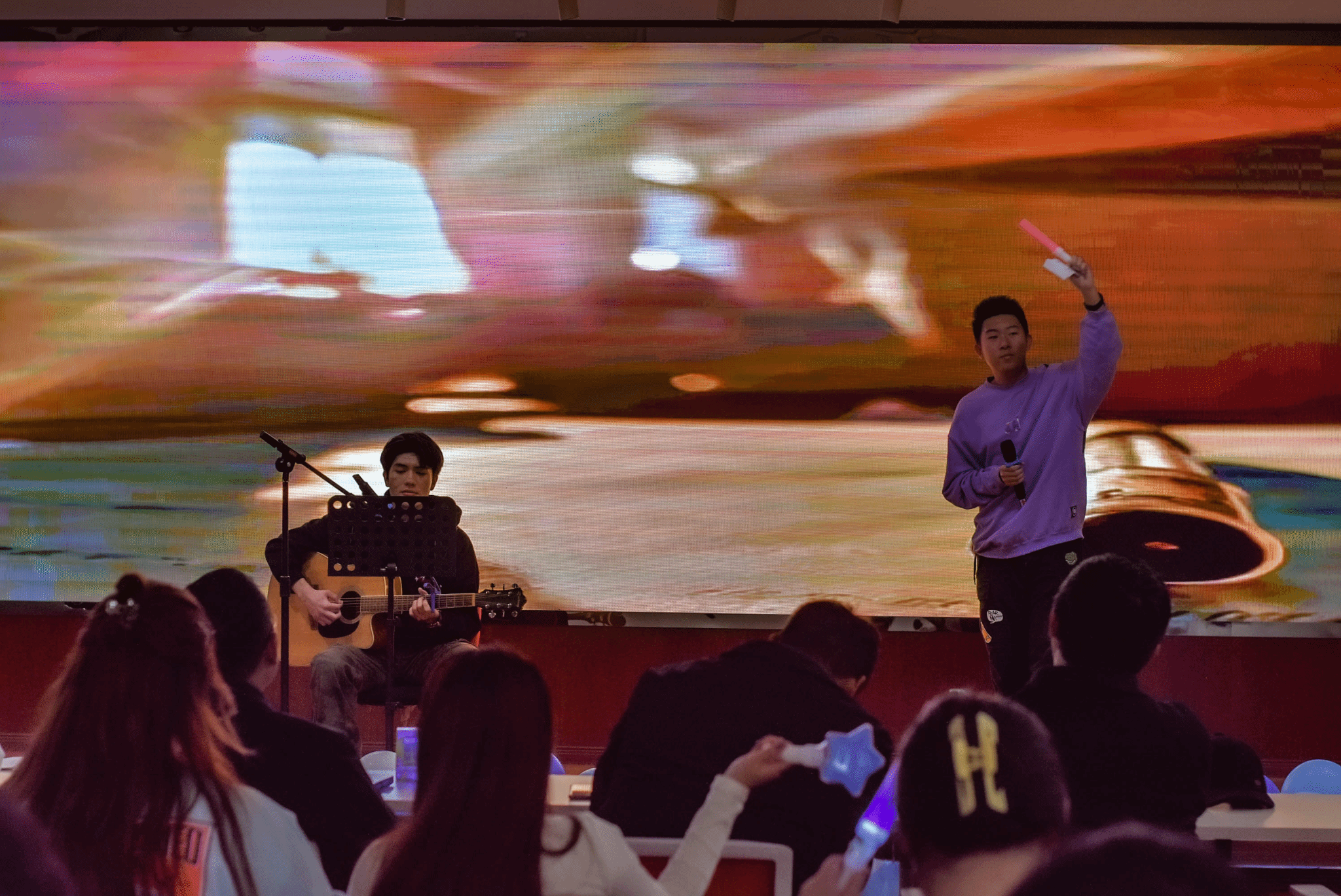 接着,进入了晚会的第二篇章——医心同行·共创未来。由医学院青年志愿者协会带来的朗诵《相信未来》以激昂的语调和深情的表达,传递出对未来的美好憧憬与坚定信念,医学院班团建设中心带来的弹唱《慢慢·晴天》让观众们在悠扬的琴声中感受到温暖与宁静,仿佛置身于阳光洒落的美好时光,心灵得到了片刻的放松与愉悦。而生医2024-02班的窦鲲鹏和安比亚·艾克拜尔带来的民谣串烧则以清新的旋律和动人的歌词,唤起了大家对生活的热爱与对未来的期待。