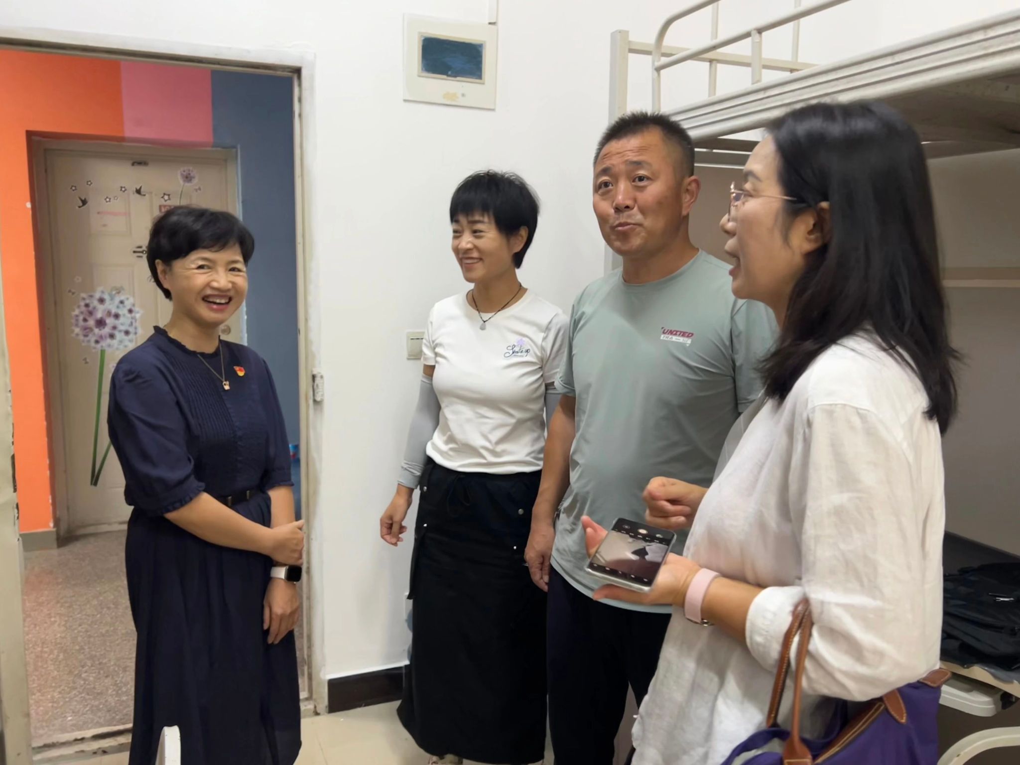 党委书记曾东红、党委副书记于楠及2025级新生辅导员靳涵,深入学生宿舍看望新生,关切询问同学们的生活适应情况,勉励大家营造良好生活环境,培养独立能力,建立融洽关系,祝愿新生在交大安居乐业,开启人生新篇。