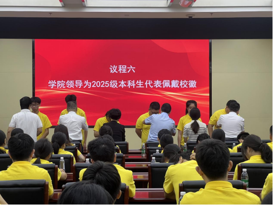 接着,学院领导为2025级新生代表佩戴校徽。一枚枚象征着交大人的校徽佩戴在胸前,自豪感和责任感油然而生。师长的亲切问候是对新交大人的叮嘱,未来必为交大做贡献。