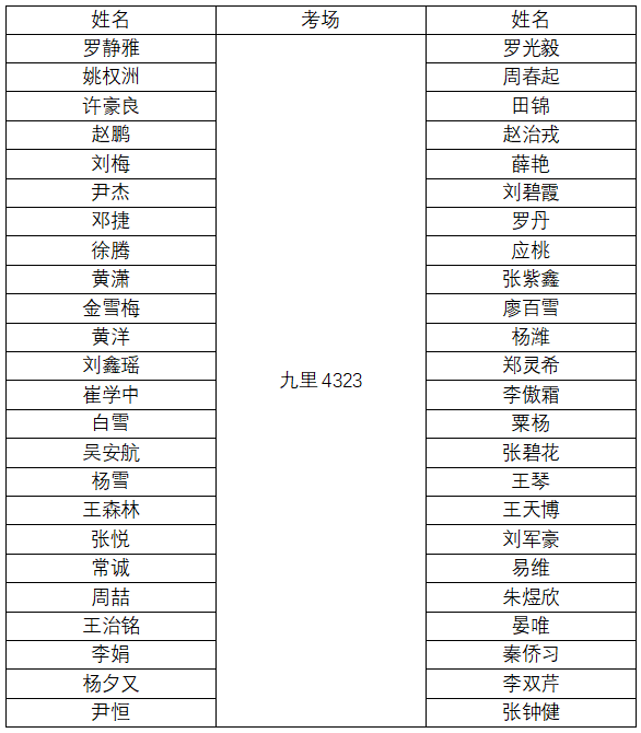 九里4号教学楼J4323、J4324,具体人员安排见下图。