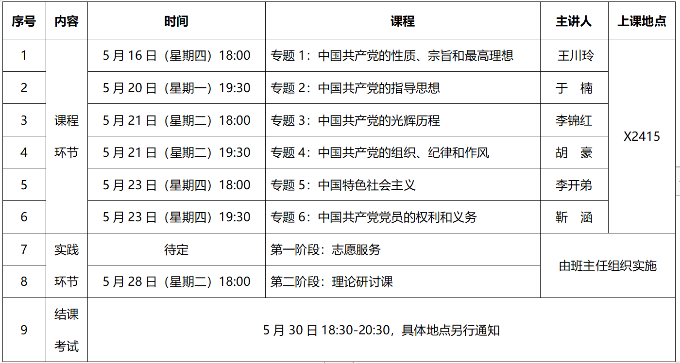 1、培训实行课堂教学、实践教学和自主学习相结合的培养方式。课堂教学由分党校聘请党课教师主讲,实践教学由各班主任组织、分小组进行,自学学习可与学生时事政策教育、党团活动等环节相结合。