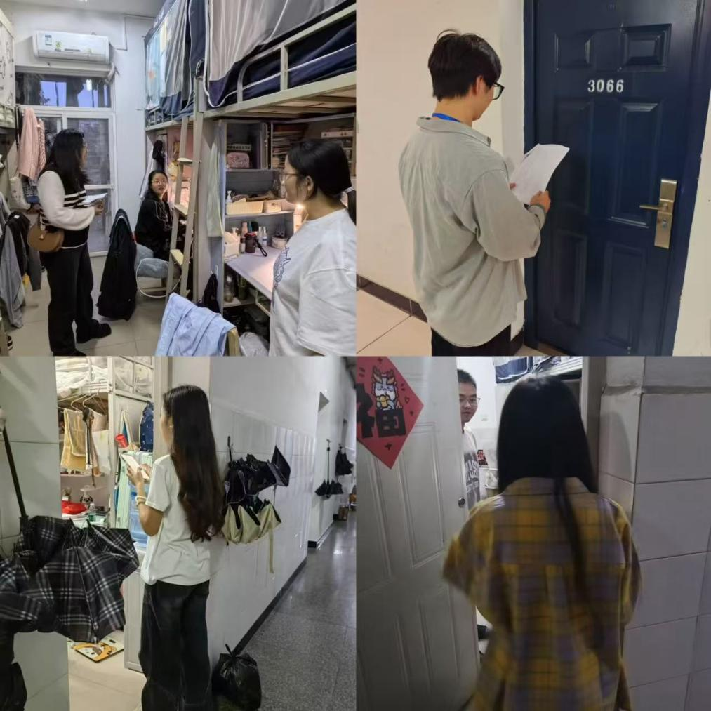 2025年10月8日,医学院依托学生会、研究生会,成立10余人的安全联合检查小组,开展宿舍、实验室双线联合检查。围绕 “平安医学” 建设,分别深入犀浦校区、九里校区查隐患、筑防线,为全体在校学生营造安全环境并强化其安全意识。此次联合检查由院党委副书记于楠统筹部署,辅导员胡豪、靳涵、廖柯琳、韩鹏飞分别带队开展。