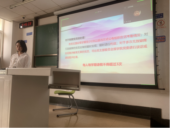 结合支部的实际情况,张雪同志着重介绍了《规范》中关于组织生活制度及党员考核的相关规定及要求。关于组织生活制度,张雪同志强调要准确把握组织生活的总体要求,从严抓实关键环节,确保党组织生活质量。在理论学习的形式上,她提到支部内可以通过分组进行学习,每次由一个小组来进行组织学习,各小组在充分研讨、充分策划的情况下,以尽量喜闻乐见的形式来组织。关于党员考核的标准及要求,张雪同志也逐一进行了讲解,并针对可能存在的疑问进行了解答。