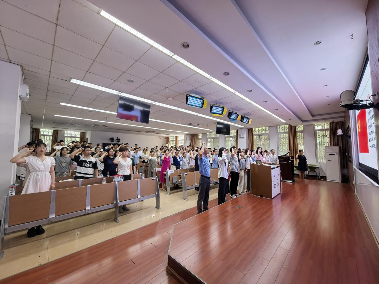 2025年6月30日下午,医学院党委于九里校区逸夫馆4105召开党员大会。本次大会共分为“表彰仪式、宣誓大会、全面从严治党大会、推进作风建设交流研讨会”四个阶段,医学院全体党员参会,党委副书记、纪委书记于楠主持会议。
