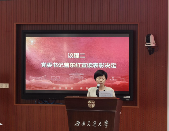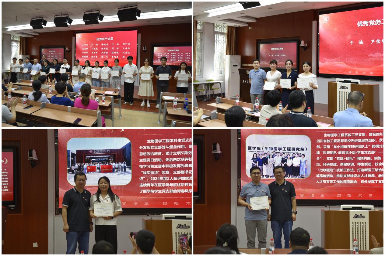 大会第一阶段,举行医学院党委“两优一先”表彰仪式。党委书记曾东红宣读了《关于表彰2023-2025年医学院优秀共产党员、优秀党务工作者和先进党支部的决定》,对在教学、科研、管理及党务工作中表现优异的党员和党支部进行表彰。李孝红等20名同志被授予“优秀共产党员”称号,于楠、芦莹华、蔡俊俊3名同志被授予“优秀党务工作者”称号,生物医学工程本科生党支部被授予院级“先进党支部”称号。同时,生物医学工程系教工党支部在校级评选中脱颖而出,被授予“西南交通大学先进基层党组织”称号。
